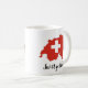Montrez à tous votre amour pour le pays de la Suisse avec cette tasse à café unique avec une carte de la Suisse remplie des couleurs du drapeau suisse. La police et la couleur du texte et la couleur arrière - plan du produit peuvent être modifiées selon vos préférences.