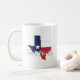 Fort Worth, Texas flag plan tasse de café. Cette conception présente "Fort Worth" dans un script, police de style calligraphie en blanc avec contour gris clair sur la carte de l'état qui est rempli avec le drapeau du Texas. Cette tasse à café de la ville est une excellente façon de profiter de votre café et de montrer que vous êtes fier d'être de Fort Worth, TX.