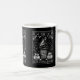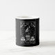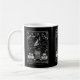 Grunge carte tarot design pour les amateurs de latte d'épices citrouilles! L'Épice Citrouille. Illustration blanche et noire avec une tasse à café à aller avec crème fouettée et main squelette, jack-'olanterns, chauve-souris, arbres déplaisants, et un fantôme.