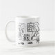 Caricature de Chemiste en médecine complémentaire sur une tasse. Idée cadeau pour un chimiste en médecine complémentaire ou toute personne travaillant dans le secteur de la médecine complémentaire. Thème de la médecine holistique. Image amusante d'un chimiste utilisant un mortier et un pilon.