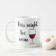 Express-toi avec cette mignonne tasse avec les mots "This Might Be Wine" avec un dessin d'un verre de vin rouge. Faites un grand cadeau de Noël ou d'anniversaire pour les amateurs de vin de votre vie.