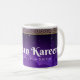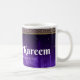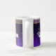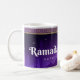 Mug à café Ramadan Moubarak violet et blanc avec mosquée, motif arabe et "Ramadan Kareem, Joyeux Mois Saint" écrit sur arrière - plan violet. Un cadeau idéal pour vos proches.