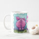 Animal Parade Pig Birthday Party mug présente notre art original d'un cochon mignon debout dans un champ vert et herbacé avec une clôture blanche et un ciel texturé bleu à l'intérieur d'une frontière verte ondulée ludique peinte par l'illustrateur primé Traci Van Wagoner. Cet animal fantaisiste de l'avant et de l'arrière, accompagné d'une jolie queue de cochon bouclé, sur de nombreux produits, est sûr d'apporter un sourire aux amoureux de cochons de tous âges. Jetez une fête de cochon rose animal à la basse cour pour votre enfant aujourd'hui avec notre cochon de coordination amusant et fantaisie cadeau et idées de fête. Faites une bonne fête ! Rose !