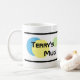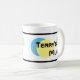 Mug personnalisé de taille petite et de couleur blanche classique avec des cercles colorés et des bandes noires. Vous pouvez personnaliser avec votre propre texte, les couleurs du design et du texte peuvent être personnalisées davantage en sélectionnant plus d'options