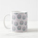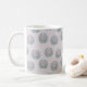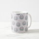 Cette tasse a un design art déco de cercles et de lignes de courbes formant trois figures formant une forme répétitive en mer et brun sur un arrière - plan bronzé. Si vous aimez le design mais préférez différentes couleurs, envoyez-moi un message.