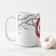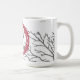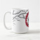 Le cerf Vintage dans un cadre victorien rouge bordé de branches nues et de délicats flocons de neige font une belle et sereine tasse en céramique de Noël ou d'hiver.