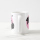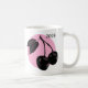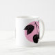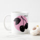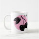 Design de bois cerise sur cercle rose sur mug blanc.