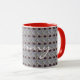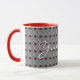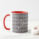La tasse bordée et manipulée de ce rouge indique délicieux et est couverte de tuiles avec les peintures en pastel d'une cerise rouge délicieuse.