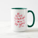 Personnalisez ce mug de Noël de Noël de vacances qui figure dans la typographie moderne "C'est le moment le plus merveilleux de l'année", jouer avec les deux couleurs, celui-ci est en vert et blanc. Type de script rouge avec des ornements sacrés. Un cadeau réfléchi.
