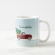 Préparez-vous à vous enfoncer dans le canapé pour un film de Noël en regardant le marathon avec cette tasse ! Prêt pour le thé, le cacao, le café ou toute autre boisson que vous préférez lorsque vous obtenez votre plein de films de vacances appétissants. Drapeau rouge avec les mots Christmas Movie en script sur un côté. Un camion rustique dans un bison plaqué imprimé avec un sapin dans le dos de l'autre. Paysage hivernal enneigé en arrière - plan. Personnalisez avec votre nom ainsi que le texte "regarder la tasse". Disponible également sur d'autres produits.