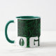Mug pour Orisha Oggun, impression complète de chaîne verte et nom blanc en texte avec conception de cowry.