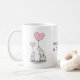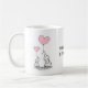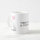 Une tasse avec l'image de deux éléphants, un petit et un adulte, tenant des ballons en forme de coeur, ainsi qu'un message souhaitant aux enfants une joyeuse fête des mères et des enfants.