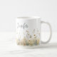 Cette belle tasse à café présente un champ rustique de fleurs sauvages douces à l'aquarelle. Ajoutez un nom pour la personnaliser. Fait un excellent cadeau pour la future mariée, la demoiselle d'honneur, la maman, la meilleure amie ou la fille ! Créé par Simply Farmhouse Press.