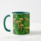 Mug dans un motif de champignons sauvages et de fougères vertes, poussant dans la forêt