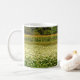 Cette tasse de photographie d'art est une célébration des charmantes collines ondoyantes et fermes de l'état de New York à la fin de l'été. Un champ de fleurs de sarrasin blanc au premier plan est suivi d'acres de maïs fleuri presque prêt pour la récolte.