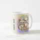 Cat Loves Dog tasse par ArtMuvz Illustration. assortis cadeaux de chat, t-shirts, sacs fourre-tout, vêtements mariages. Les chats sont amusants, et le cadeau parfait pour n'importe quelle occasion et sont sûrs d'apporter un sourire au visage de n'importe qui. Que vous cherchiez un cadeau pour un enfant, un adulte ou un collectionneur, un cadeau de chat est le choix idéal. POUR PERSONNALISER ajoutez votre nom ou ajoutez du texte à la place. Customisez cette tasse de chat aime le chien pour en faire la vôtre ou offrir en cadeau personnalisé