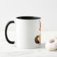 Mug keramik ini dirancang untuk para pecinta kucing dan siapa saja yang menyukai desain yang imut dan menggemaskan. Mug ini berwarna putih dengan bagian dalam dan gagang berwarna hitam yang kontras