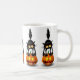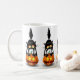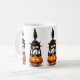 Chat drôle et effrayé Halloween personnage de dessin animé debout sur un Citrouille riant coquin. Image vectorielle humoristique originale Copyright BluedarkArt TheChameleonArt.
