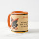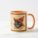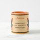 Le chat noir d'Halloween de style vintage porte un casquette aux sorcières orange et une cravate à pois orange et blanc. Arrière - plan est un orange pâle avec un arrière - plan pointillé orange et blanc polka et des bords noirs. Le design est le même des deux côtés et au milieu vous le personnalisez avec votre nom. Ci-dessous, on peut lire "Ponce de mes sorcières de café".
