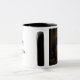 Chat noir et une tasse à café citrouille Halloween éffrayante face en bas.