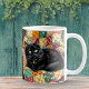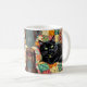 Un mignon chat noir posé sur une courtepointe sur une chaise à bascule. Une tasse à café à thème pour chat doux pour tous ceux qui sont obsédés par les chats !