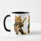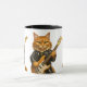 Une image originale et pleine de caractère : un chat beige musicien debout comme un vrai musicien, vêtu d’un ensemble en cuir noir brillant, tenant fermement une guitare électrique. Ce chat rocker affiche un air déterminé et confiant, comme s’il s’apprêtait à donner un concert inoubliable. Son pelage beige soyeux, ses pattes puissantes et sa posture assurée donnent vie à cette illustration dynamique. Les détails sont soignés : les cordes de la guitare, les reflets sur le cuir, l’allure fière du chat habillé comme une rockstar. Ce design amusant et énergique fusionne humour, originalité et esprit musical. Il évoque la passion, l’audace et la créativité. Parfait pour les amoureux des chats et les fans de rock.