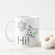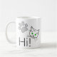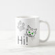 Son texte et les dessins d'un chat visage avec les yeux verts et une patte. Bonjour aux chats. Mug de café amusant pour n'importe qui. Personnalisable . Vous pouvez modifier l'image.