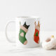 Quatre petits chats dans des coques rouges et vertes de Noël