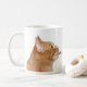 chat tigré orange faisant la langue parler sur une tasse de café/tasse