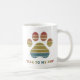 Indulge in a dose of feline sass with this 'Cheeky Cat Paw Quip Coffee Mug', an ideal pick for cat lovers with a penchant for humor. The design takes a playful swipe at the cliché 'Talk to the hand' with 'Talk to My Paw', purr-fect for those mornings when only your cat understands your need for silence. This mug features a paw print with a modern twist, adorned with stripes in autumnal hues that provide a cozy vibe. It's more than just a beverage holder; it's a statement piece that serves as a humorous ice-breaker at the office or a charming kitchen cupboard staple. With this long-tail keyword optimized mug, embrace the quiet rebellion of a peaceful coffee break, all while flaunting your kitty pride.