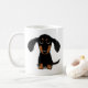 Une tasse amusante pour les amoureux de les chiens de verres ! Cette adorable tasse à café Dachshund de dessin animé fait un grand cadeau pour toute occasion. Puppy noir et bronzé Longhaé Daschund avec de longues oreilles disquettes. Visitez Jenn's Doodle World pour encore plus d'accessoires pour la maison et le bureau avec ce dessin humoristique de chien et des dessins Dauchsund plus mignons.