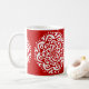 Ce mandala blanc est assis sur un arrière - plan rouge vif. La couleur est énergique et chaude. Partie de la collection Kylgh Mandala.