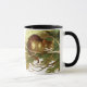 Tasse noire et blanche de 11 oz avec une image vintage, de part et d'autre, d'Alice dans le malicieux Cheshire Chat de Wonderland dans un arbre. Voir l'ensemble de la collection Wonderland Mug dans FOOD/BEV | Section Plats.