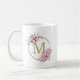 Chic Circle Monogram Aquarelle Floral & Gold Foil Mug, avec des fleurs d'aquarelle modernes en rose et violet. À l'intérieur d'une bague Faux Gold Foil Circle. Un design féminin branché, fait un grand cadeau ou pour vous-même. Ajoutez votre lettre initiale Monogramme personnalisée. Customisez davantage en modifiant la couleur de l'arrière - plan ou en ajoutant du texte supplémentaire.
