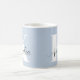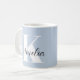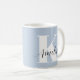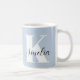 Tasse bleu clair personnalisée avec votre monogramme initial dans la grande typographie blanche moderne et votre nom dans un script signature élégant.