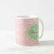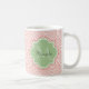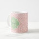 Une chic tasse motif à pétoncle rose pâle avec un badge vert doux en quatrefoil que vous pouvez personnaliser en ajoutant facilement votre propre monogramme et votre nom. Cela fait partie de la collection de printemps du Monogramme vert du Nil des pétoncles Dahlia en fleurs.