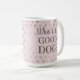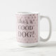 Célébrez la joie d'avoir un animal de compagnie avec cette tasse à café chic et fabuleuse à pois rose chien photo. Ce design présente un arrière - plan rose deux tons avec un endroit pour mettre une photo de votre animal et customiser avec le nom de votre animal. L'autre côté de la tasse a un texte qui dit "Qui est un BON CHIEN ?