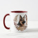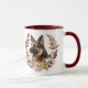 Une jolie couronne d'automne dans les tons marron cannelle, brun brun, brun et crème entoure l'image d'un Chien berger allemand. L'image est imprimée deux fois sur la tasse, avec votre texte personnalisé entre eux. Vous pouvez facilement remplacer le texte par votre nom, si vous préférez.