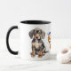 "You Make My Tail Wag" déclare cette mignonne tasse. Un adorable petit chiot noir et bronzé Coonhound est assis de chaque côté. Mignonne pour le propriétaire de chien Hound, mais convient aussi à tous ceux que vous aimez le jour de la Saint-Valentin ! Vous pouvez ajouter le nom de quelqu'un au milieu inférieur ou supprimer le texte, si vous le souhaitez.