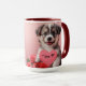 Un mignon chien chiot tenant une boîte en forme de coeur avec les mots "I Love You" qui peut être édité afin que vous puissiez mettre votre propre message spécifique sur le coeur. Le côté opposé a les mots "Heureuse Sainte-Valentin !" et cela peut être édité aussi, pour que vous puissiez mettre un autre message ou ajouter un nom. Vous pouvez également transférer l'image sur un autre produit de taille similaire. Contenu génératif.