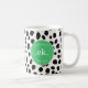 La Mug à café Monogram Green Monogram, Abstrait Motif de Dalmatie, offre une touche personnalisée aux amoureux de les chiens. Ornée d'un design abstrait moderne avec des taches dalmate, cette tasse est customisée de vos initiales, ce qui en fait un ajout unique à vos ustensiles de cuisine. Parfait pour déguster vos boissons préférées, il est idéal pour les propriétaires d'animaux et les amateurs d'animaux, surtout pour les anniversaires, les vacances ou les ménagères. Cette tasse élégante allie fonctionnalité et flair amusant et personnalisé.