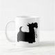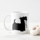 Un profil noir de silhouette d'un Scottie que le chien avec lui est laisse tenue dans lui est bouche, queue haute et désireuse de faire une promenade.