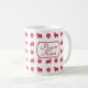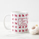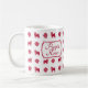 Un motif répétitif de Bulldogs, de roses et de coeurs français enroulés dans des enveloppes rouges profondes autour de cette tasse en céramique. Créé pour les amateurs de la race française Bulldog, il présente des silhouettes propres et des détails floraux stylisés. Convient pour un usage quotidien, et une option cadeau pratique pour les propriétaires de chiens ou les amateurs de race.