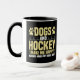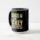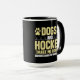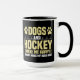 Tasse à thème de hockey avec texte qui lit Chiens et Hockey Me rendre heureux Humans Make My Head Hurt! Il y a aussi des bâtons de hockey et des empreintes de pattes de chiens!