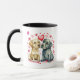 Café noir à deux tons / thé / chocolat chaud Idée cadeau Mug pour elle / femme / petite amie / partenaire. Parfait pour un Anniversaire, la Saint Valentin, un anniversaire ou juste parce que vous voulez lui montrer ce qu'elle veut dire pour vous. Avec deux chiens mignons et des coeurs d'amour. Personnalisez avec un nom / vous aimer est facile. Noir, blanc et rose.