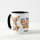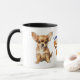 "You Make My Tail Wag" déclare cette mignonne tasse. Un adorable petit chiot brun Chihuahua est assis de chaque côté. Mignonne pour le propriétaire Chihuahua, mais convient aussi à tous ceux que vous aimez le jour de la Saint Valentin ! Vous pouvez ajouter le nom de quelqu'un au milieu inférieur ou supprimer le texte, si vous le souhaitez.