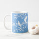 La porcelaine bleue et blanche est depuis longtemps ma préférée. Je ne suis pas tout à fait sûr d'où ça a commencé, mais je me rappelle avoir admiré les petits morceaux de Jasperware de Wedgwood que ma mère et mes grands-parents avaient exposés. Il y a un certain nombre d'années, on m'a demandé d'aider à décorer mon église pour une conférence qui se tenait là-bas. J'ai eu une grande toile et j'ai créé un tableau acrylique avec deux colombes blanches contre un arrière - plan bleu - inspiré par la porcelaine bleue et blanche que j'admirais tant. Une colombe s'avance sur une branche fleurie où son compagnon attend. J'espère que cette scène tranquille vous remplira d'un sentiment de paix et de repos et vous transportera à ce merveilleux moment de l'année où l'hiver cède la place au printemps.