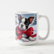 Mug Chiot avec Bow rouge sur la scène de Noël enneigée