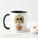 Cette conception brune adorable de chiot est décorée des remous et des motifs de point. La fleur jaune pédale cercle les yeux au beurre noir purs dans la tradition du jour des crânes morts de sucre. Le petit chien s'assied, regardant en avant avec sa queue ondulant à l'arrière-plan. La tête surdimensionnée se repose sur un corps minuscule qui crée un espiègle, bande dessinée comme l'aspect. Une étoile de cinq points se repose au milieu du front du chiot tandis qu'un coeur rouge et jaune lumineux apparaît au centre du coffre. Ce petit chiot mignon est un amusement et une conception élégante inspirés par les beaux motifs du jour des crânes morts de sucre.