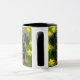 Mug chiot noir 3D dans fleurs jaunes.